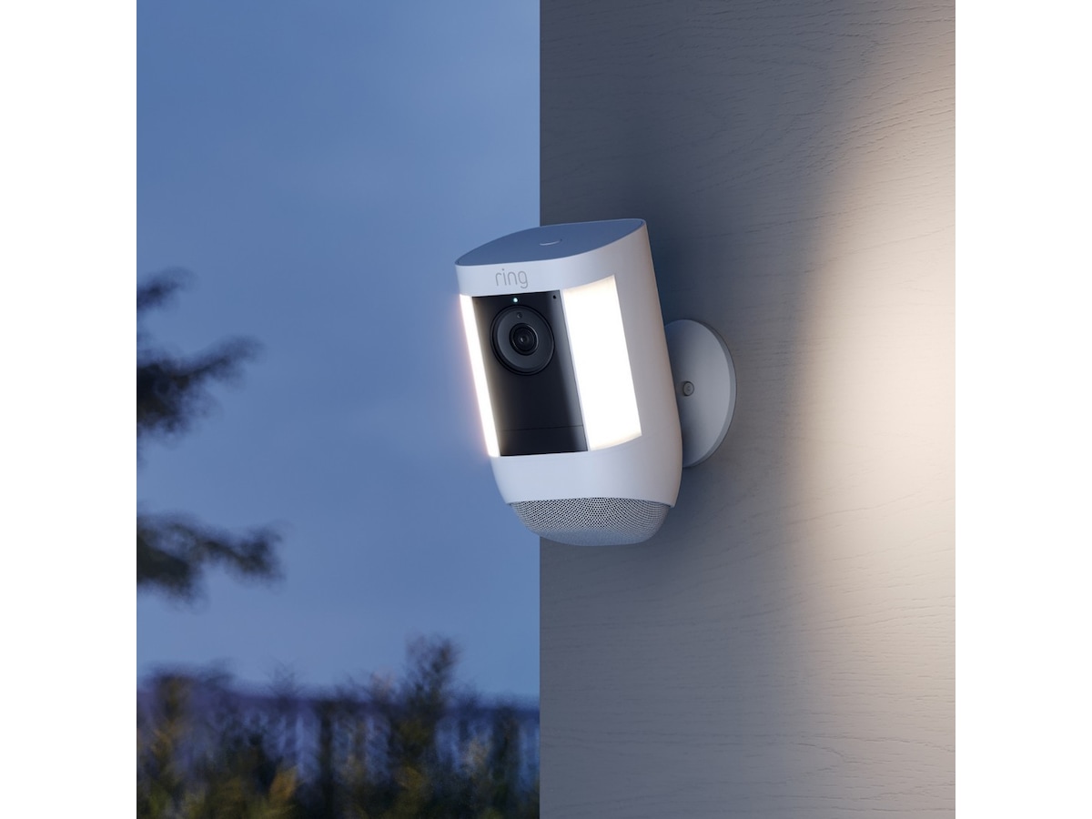 Ring Spotlight Cam Plus inkluderer Live View, toveis samtale, avansert bevegelsesdetektering, tilpassbare bevegelsessoner, personlige innstillinger som kan tilpasses, fargenattsyn og en brukervennlig app. Ring Spotlight Cam Pro bygger på alle disse flotte funksjonene med ny design og avanserte funksjoner, inkludert radardrevet 3D-bevegelsessensor, fugleperspektiv, Audio+ for forbedret lyd, HDR-video og dobbeltbånd-wifi.
