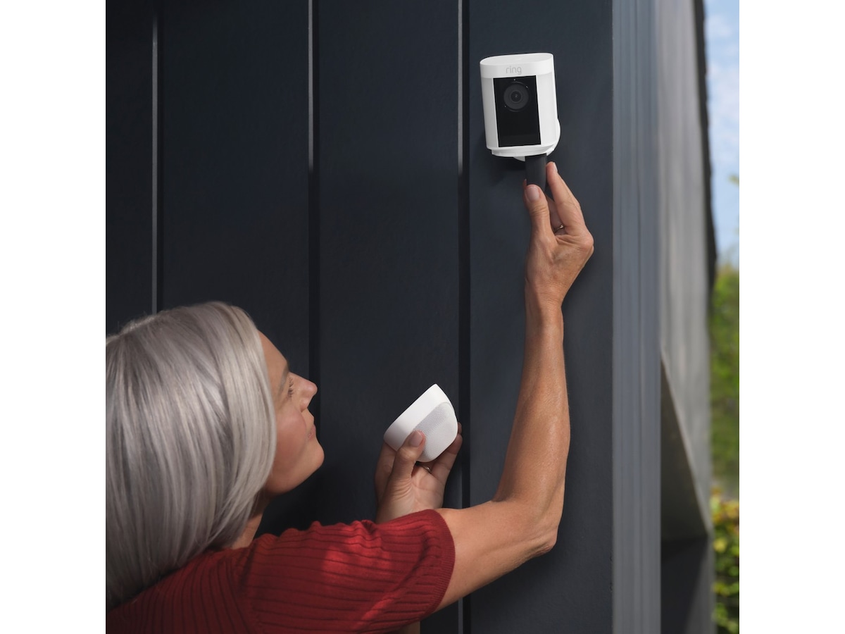 Ring Spotlight Cam Plus inkluderer Live View, toveis samtale, avansert bevegelsesdetektering, tilpassbare bevegelsessoner, personlige innstillinger som kan tilpasses, fargenattsyn og en brukervennlig app. Ring Spotlight Cam Pro bygger på alle disse flotte funksjonene med ny design og avanserte funksjoner, inkludert radardrevet 3D-bevegelsessensor, fugleperspektiv, Audio+ for forbedret lyd, HDR-video og dobbeltbånd-wifi.