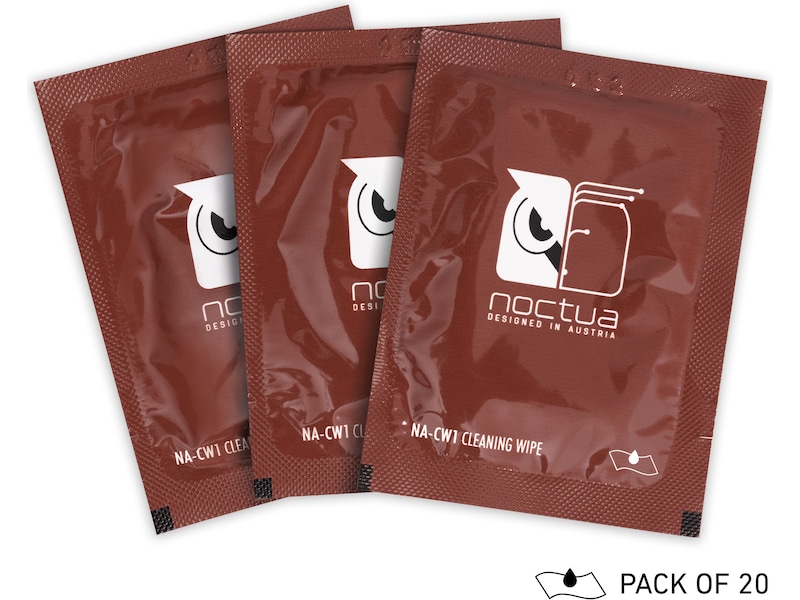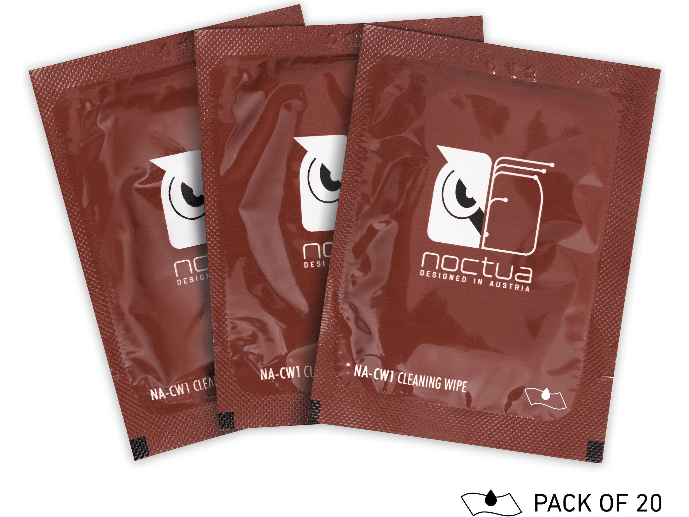The NA-SCW1 is a 20-piece set of individually packed NA-CW1 cleaning wipes for removing thermal compounds such as Noctua NT-H2 and NT-H1. Pre-moistened with a custom detergent mixture, these wipes are ideal for cleaning CPUs, GPUs and the contact surface of heatsinks in a quick and efficient manner. Thanks to their large size (15x12cm), one pad is usually enough to clean both the chip and the cooler.
