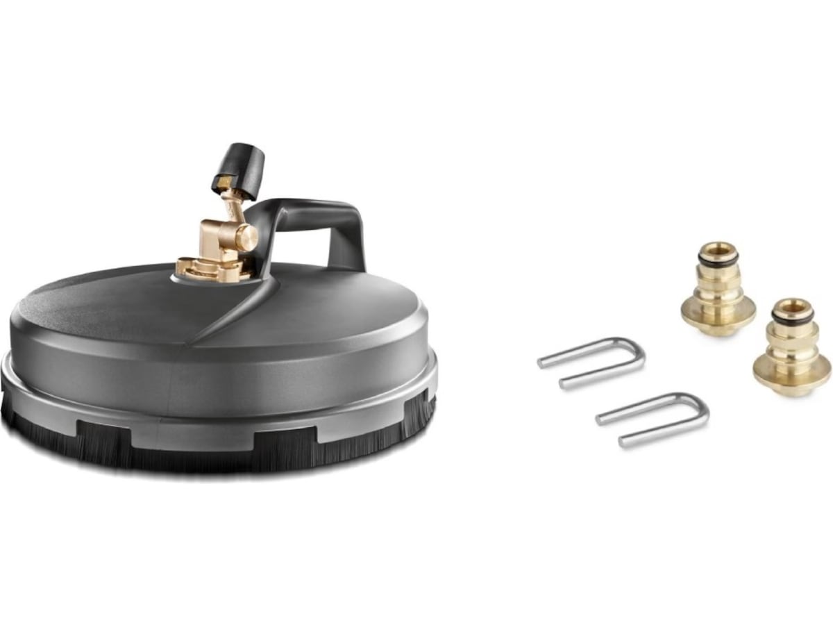 FR Classic er en robust overflatevasker fra professional-sortimentet til Kärcher. Denne begynnermodellen kommer med sprutbeskyttelse, og tåler et arbeidstrykk på opptil 150 bar og vanngjennomstrømning på 600 l/t ved 40°C. Dette gjør den ideell for rengjøring av overflater både innendørs og utendørs. Leveres med dysesett spesifikt for maskinen. Dysesettet sikrer høy driftssikkerhet og utmerkede rengjøringsresultater ved bruk sammen med høytrykksvasker og overflatevaskeren Kärcher FR Classic.