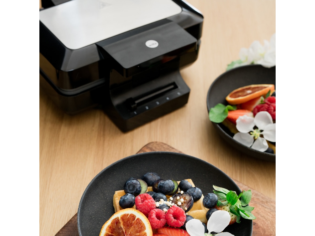 Wilfa BW-1000B Gaufres Belgisk Vaffelgjern Belgiske vaffeljernet Gaufres gir deg tykke, luftige og litt sprø belgiske vafler. Vaflene blir ekstra gode sammen med litt sirup, sjokolade og is, eller topp med pisket krem og bær.