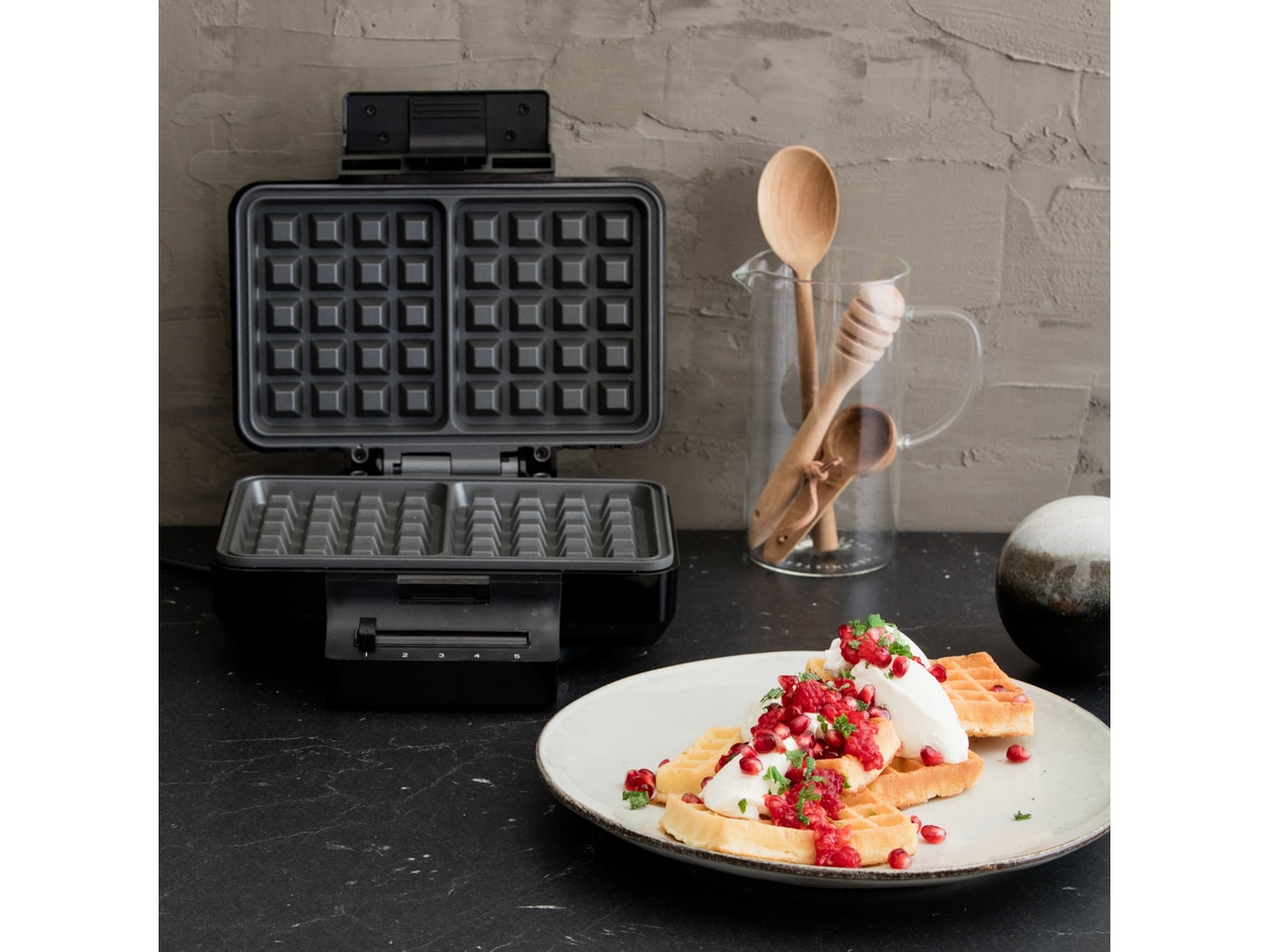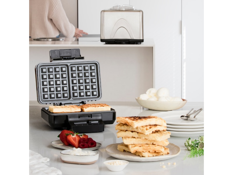 Stilrent design Gaufres vaffeljern er i stilrent design, og gir deg mulighet til å steke to belgiske vafler samtidig.