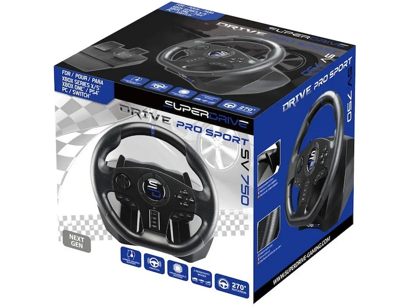 SV850-rattet gir deg en tidobbelt og ultrarealistisk kjørefølelse med sitt 28 cm ratt og en 270° rotasjonsvinkel som tilpasser seg kjørevanene dine, med 3 følsomhetsnivåer, som kan justeres direkte fra rattet.