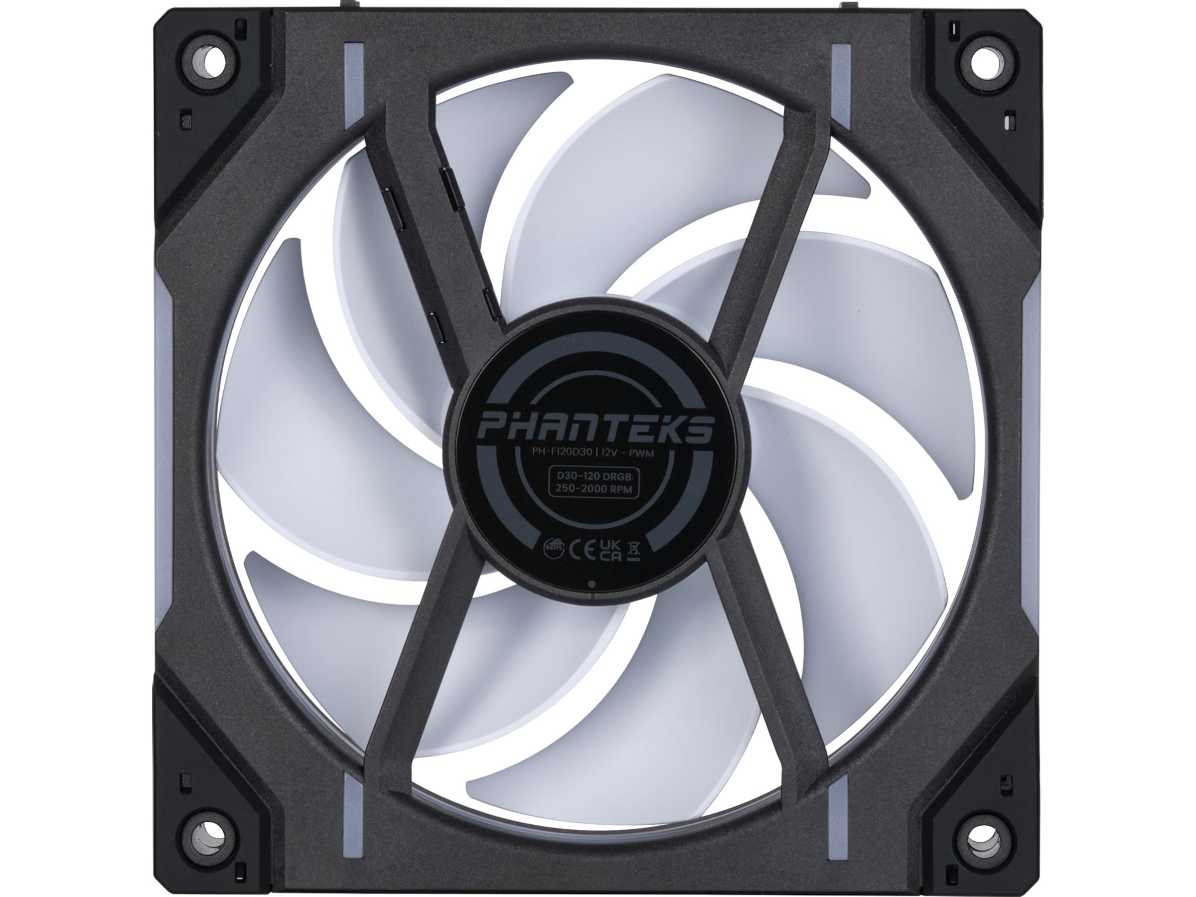 Phanteks D30-120 er utstyrt med integrert D-RGB-belysning i hele rammen og bladene på alle sider. Flere D30-120-vifterammer kan kobles sammen med brokontakter og skruedeksler for å redusere kabelrot, noe som resulterer i ekstremt rene bygg.