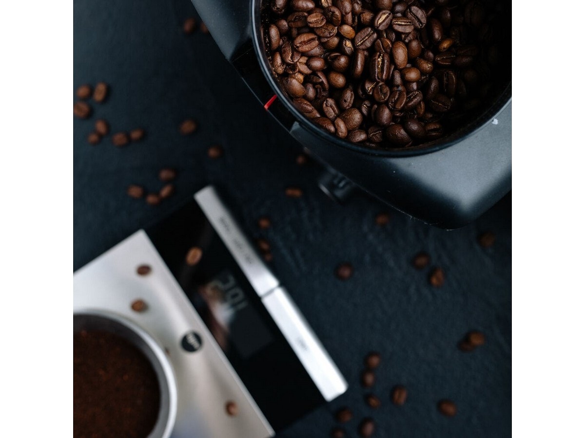 Kverningsgraden velges enkelt ved å vri på bønnebeholderen. Kaffekvernen har fem kverningsgrader å velge mellom: kokekaffe, presskanne, filterkaffe, aeropress og Moka pot. Kverningsgraden kan også enkelt finjusteres, slik at du alltid finner perfekt innstilling for din smak og dine kaffebønner.
