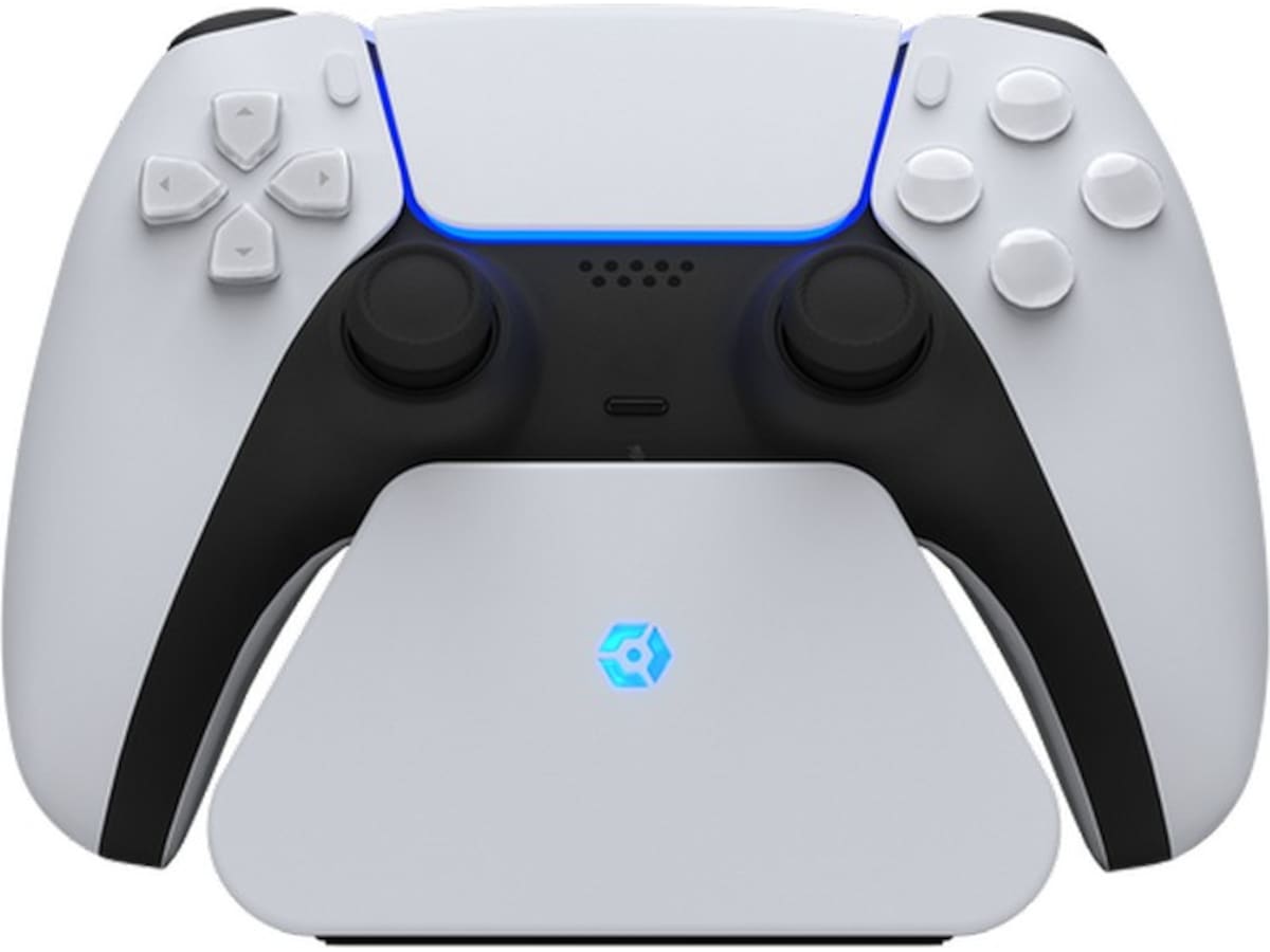 Lad og vis frem PS5™ DualSense™-kontrolleren med SOLO-ladestativet fra GIOTECK, som inkluderer utskiftbare frontplater som muliggjør øyeblikkelig tilpasning for å matche PlayStation-oppsettet ditt, for en iøynefallende skjerm.