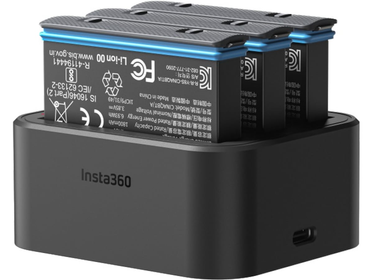 Insta360 X3 hurtigladingshub Hurtiglader enkelt opptil tre batterier samtidig. Intelligent ladehåndtering med overladingsvern.