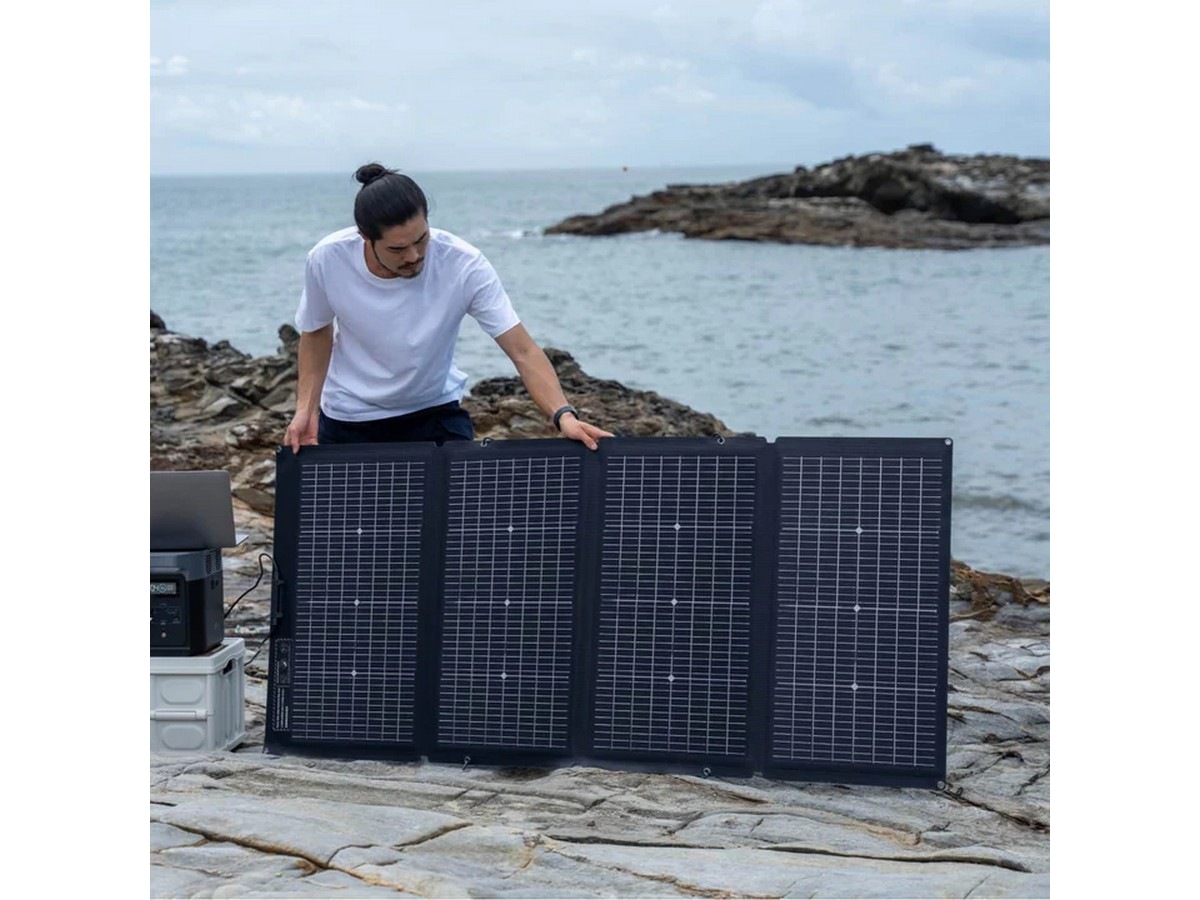 Det er et bærbart solcellepanel designet fra bunnen av for å være kompakt. 10 % mindre enn sammenlignbare 220 W-paneler, så det sparer plass med tynnere herdet glass og mindre overflate som kreves for det samme opptaket.