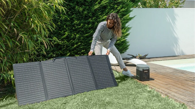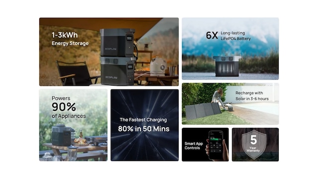 Bruk den med solcellepaneler og lad på så lite som 3–6 timer med bærbare solcellepaneler på 1x400 W, 2x220 W. Med sin smarte algoritme MPPT (Maximum Power Point Tracking) kan DELTA 2 aktivt oppdage spenningen og strømmen i sanntid for å nå makseffekten med >98 % effektivitet. Det innebærer en mer effektiv lading enn andre merker.