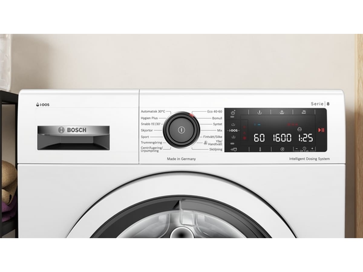 Gjør omsorgen for klesvasken din så effektiv som mulig med det automatiske doseringssystemet i-DOS. Alt du trenger å gjøre, er å fylle opp beholderne for vaskemiddel og tøymykner en gang i blant. La i-DOS selv tilsette så mye såpe og vann som trengs, ikke mer, for hver vask. Det sparer vaskemiddel og forhindrer unødvendige, ekstra skylleprosesser.