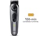 Konstruert for å vare: Denne trimmeren til menn er 100 % vanntett for enkel rengjøring, har et kraftig Li-Ion-batteri med 100 min trådløs driftstid, ultraskarpe blader og pose til oppbevaring på badet
