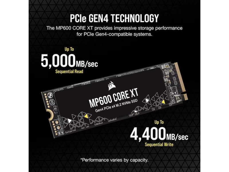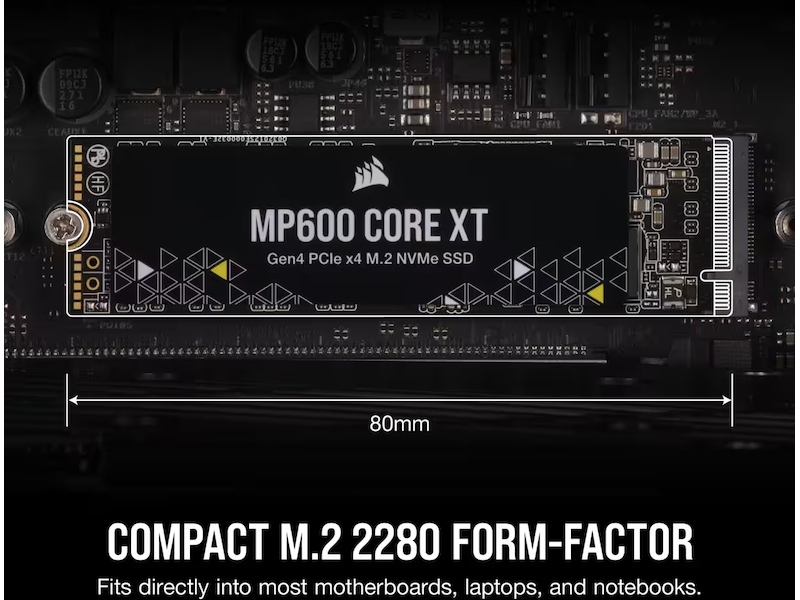 MP600 CORE XT gir deg imponerende lagringsytelse for PCIe Gen4-kompatible systemer.