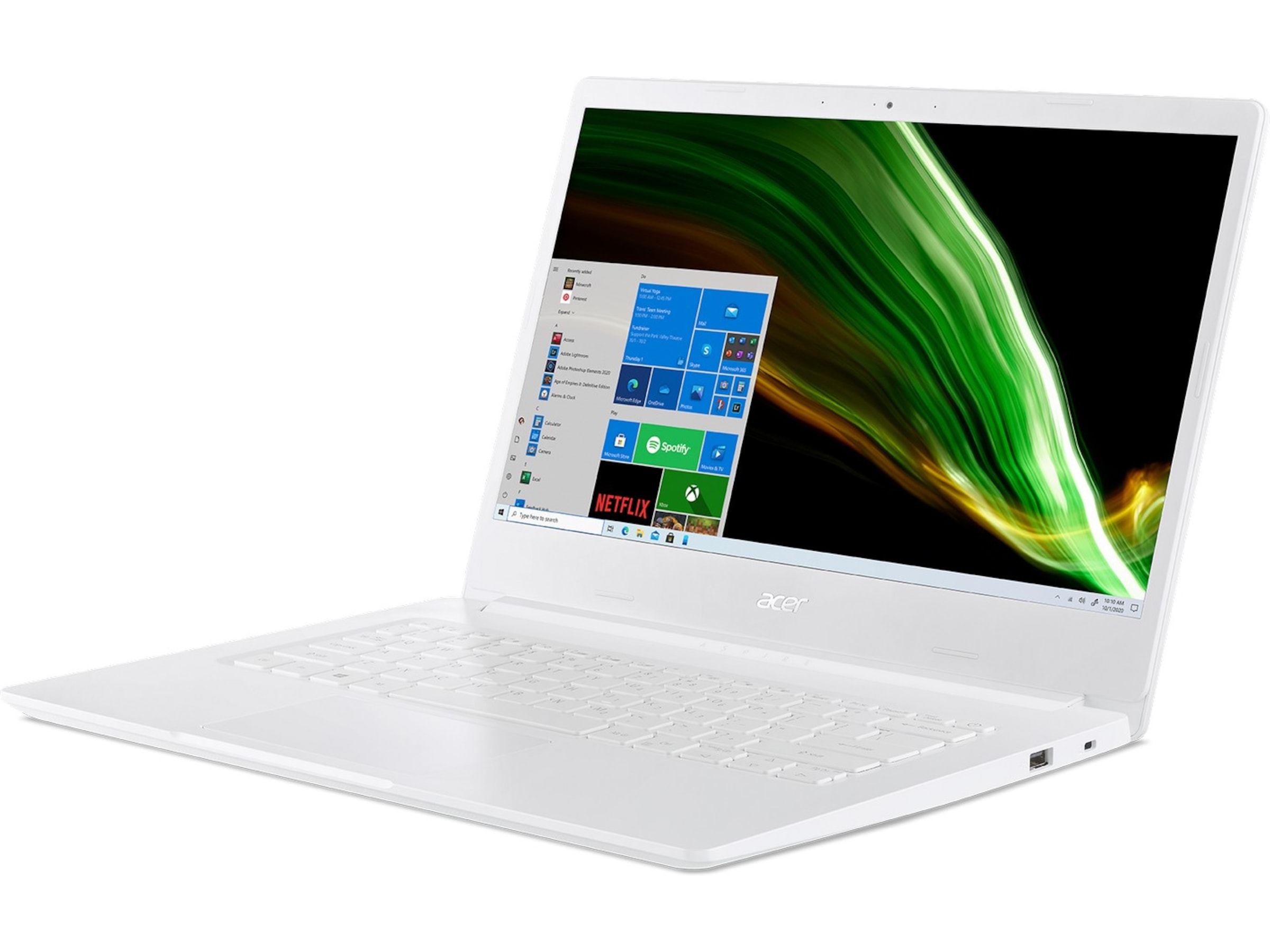 Aspire 1s praktiske bærbarhet er muliggjort av den energieffektive Qualcomm® Snapdragon'" 7c Compute Platform-prosessoren, som har en vifteløs design med en tykkelse på kun 18,9 mm og en vekt på 1,5 kg.