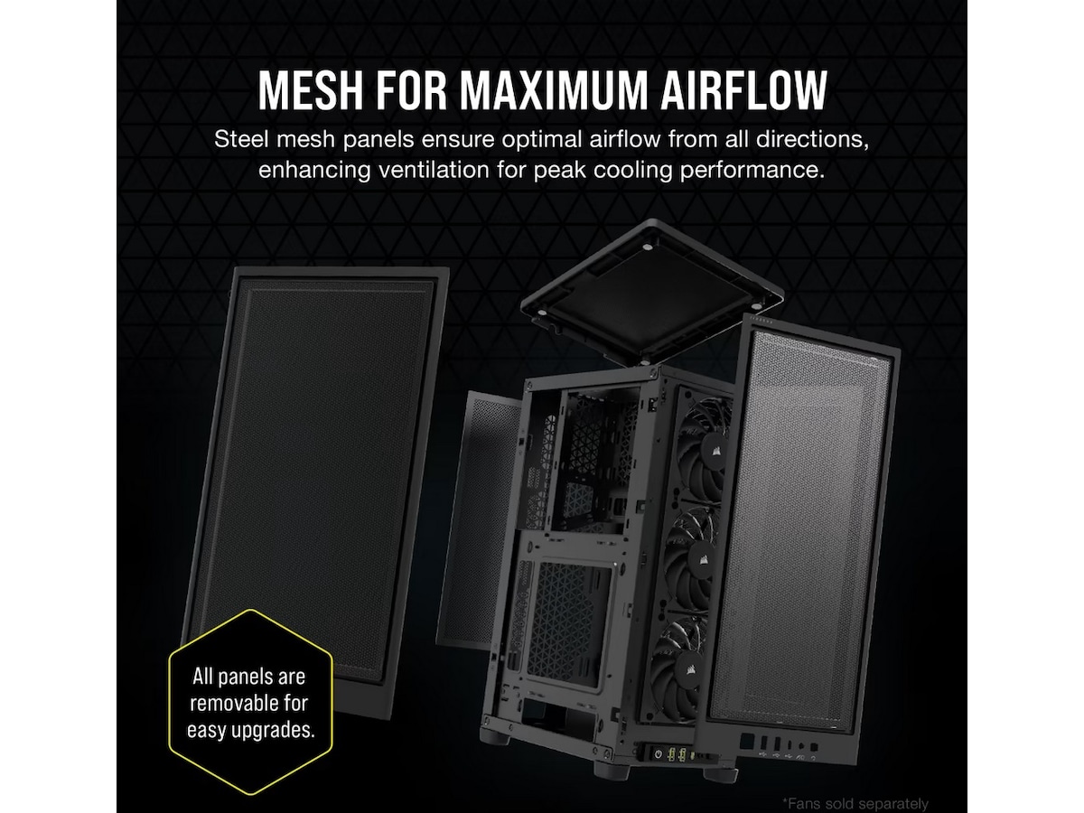 Avtagbare front-, side- og takpaneler i stålnetting gir rikelig med ventilasjon fra nesten alle sider av systemet for maksimal kjøling.