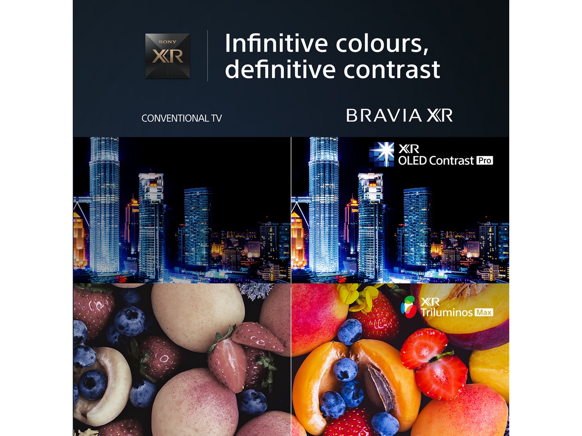 Bildeforbedringer XR Smoothing, XR TRILUMINOS Max, Netflix Calibrated Mode, Dynamic Contrast Enhancer, Forbedret klarhet, Pixel Contrast Booster, XR Super Resolution, OLED XR Contrast Pro, IMAX-forbedret, BRAVIA CORE-kalibrert, XR 4K-oppskalering, Live Color, Auto HDR Tone Mapping