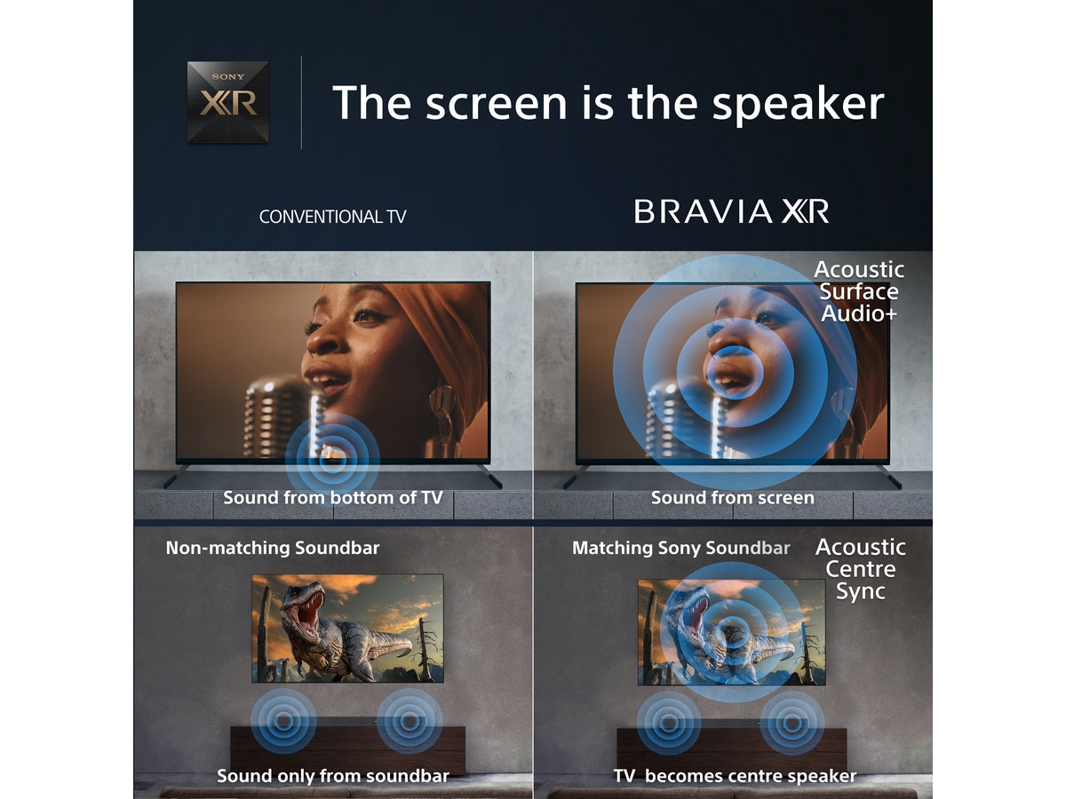 | Bildeforbedringer | XR Super Resolution, Pixel Contrast Booster, OLED XR Contrast Pro, Forbedret klarhet, Netflix Calibrated Mode, XR 4K-oppskalering, Auto HDR Tone Mapping, Dynamic Contrast Enhancer, XR Smoothing, XR TRILUMINOS Max, BRAVIA CORE-kalibrert, Live Color, IMAX-forbedret |