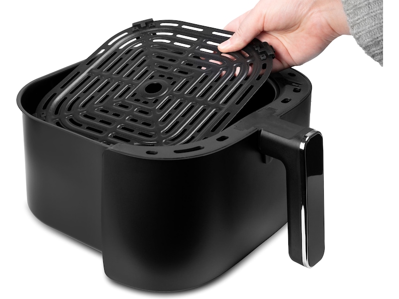 Si farvel til skrubbing etter hvert måltid. Både brettet og frityrkurven er avtakbare og kleber ikke, noe som gjør rengjøring til en lek.