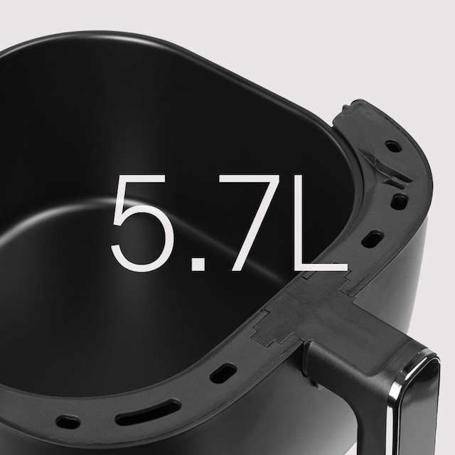 Med stor kapasitet på 5,7 liter kan airfryeren enkelt tilberede mat til 2-5 personer, samtidig som den er kompakt og sparer plass på kjøkkenbenken.
