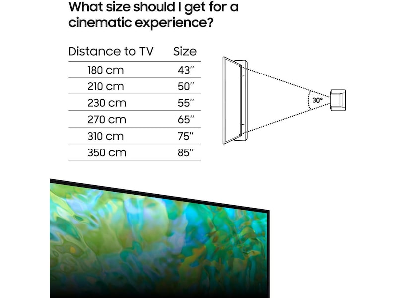 TV med slankt design og Samsungs nyeste Smart Hub for strømming av filmer og serier direkte via TV-en.
