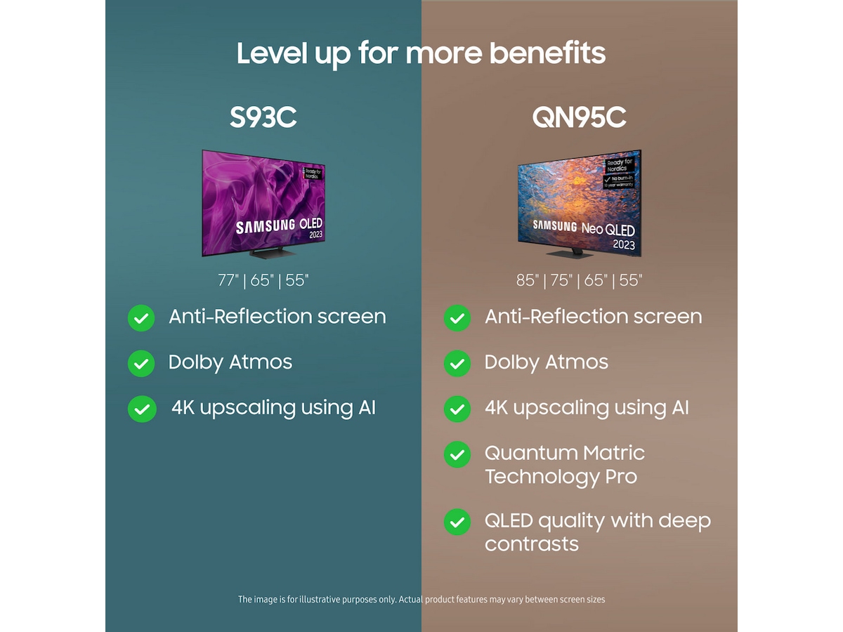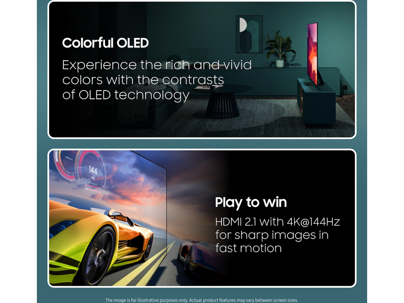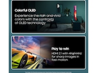 Ultratynne OLED leverer gnistrende farger og avgrunnsdypt sortnivå. Ved hjelp av AI forvandles alt innhold til 4K for knivskarpe detaljer også i scener med lynrask action. Få maksimalt utbytte av Dolby Atmos 3D-lyd ved å kombinere TV-en med en Samsung Q-Soundbar, og gled deg over film, spill og TV slik det er ment å oppleves.