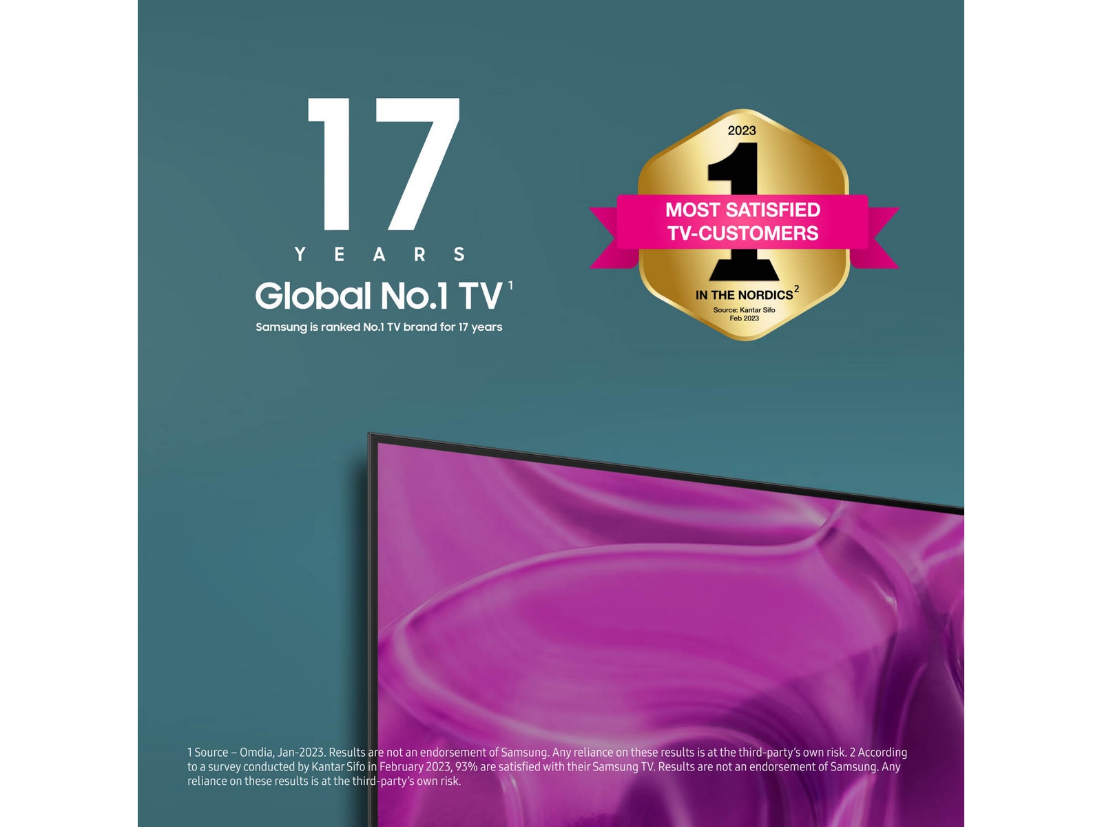 2. Ifølge en spørreundersøkelse gjennomført av Kantar Sifo i januar 2023 er 93 % av de spurte fornøyde med sin Samsung-TV. Resultatene er ikke ment som en anbefaling av Samsung. Tillit til resultatene skjer på tredjeparts eget ansvar.