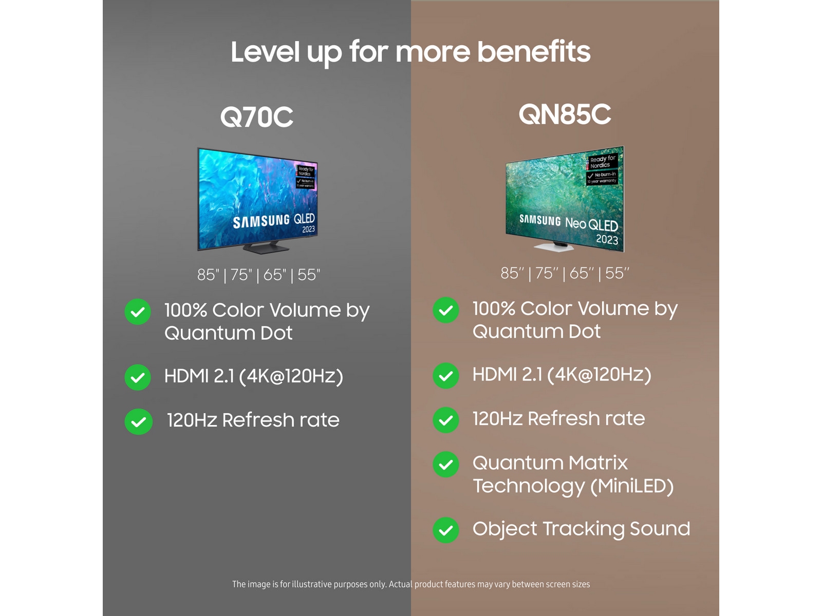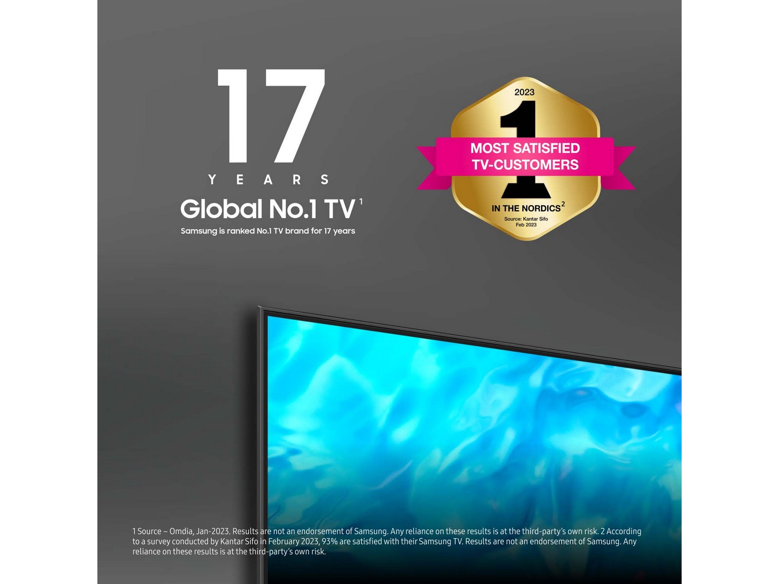 Ifølge en spørreundersøkelse gjennomført av Kantar Sifo i januar 2023 er 93 % av de spurte fornøyde med sin Samsung-TV. Resultatene er ikke ment som en anbefaling av Samsung. Tillit til resultatene skjer på tredjeparts eget ansvar.
