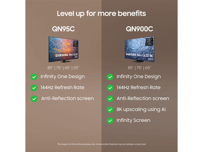 Stilrent design møter kraftig ytelse og smarte gamingfunksjoner. Krystallklart Neo QLED-bilde og tredimensjonal lyd gjør opplevelsen komplett.