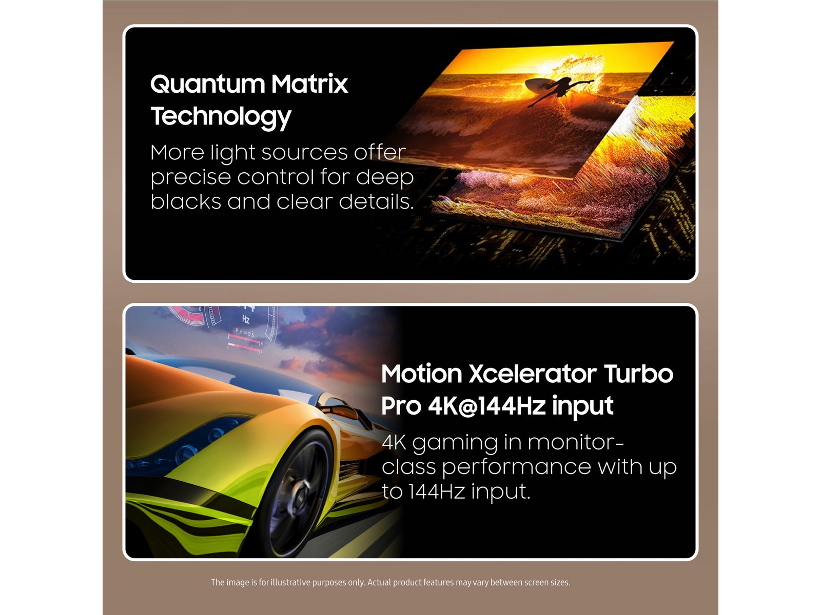 Bildehastighets- og forbedringsteknologi 144 Hz-oppdateringsfrekvens, Motion Xcelerator Turbo Pro, 120 Hz Refresh Rate
