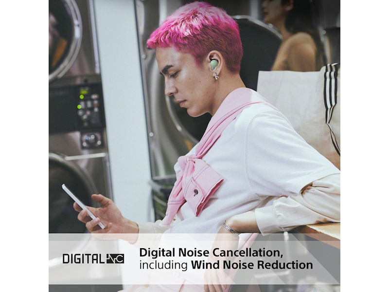 Pålitelige samtaler, uansett hvor du tar dem. Vindstøyreduksjonsstrukturen til disse Sony-øretelefonene formidler stemmen din tydelig, selv utendørs på en vindfull dag.