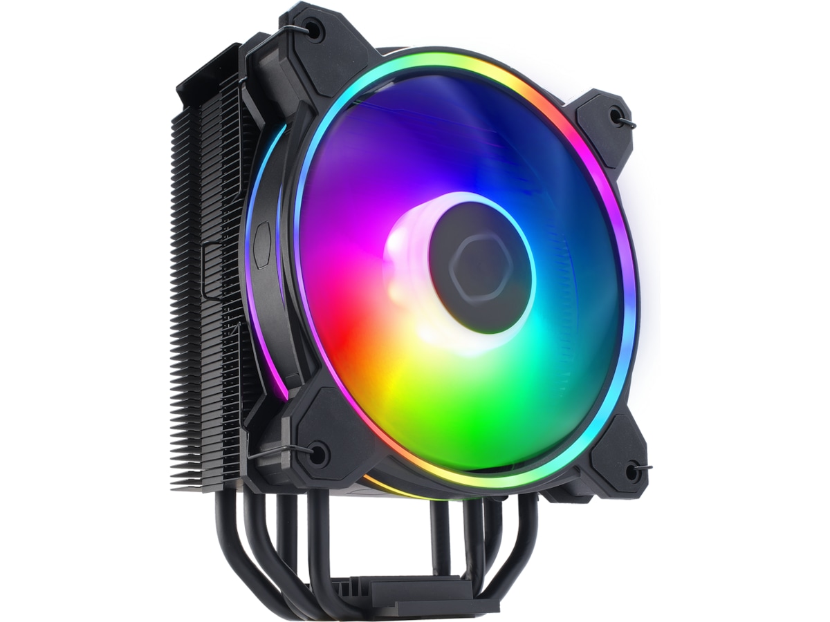 Cooler Master Hyper 212 Halo Automatisk ARGB-gjenkjenning Ren hvit finish Kompatibilitet med bredt spekter Toppdeksel i polert aluminium Oppgraderte installasjonsbraketter MF120 Halo Forbedret luftstrøm med fantastisk ARGB-belysning med to sløyfer. Den nydesignede hybridrammen opprettholder stabiliteten uten å ofre viftens drift.
