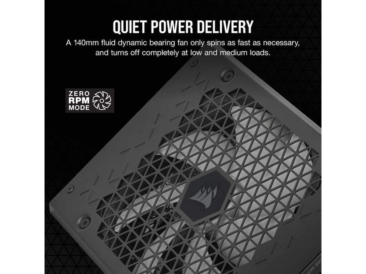 PSU-er i HXi-serien kombinerer en 140 mm flytende dynamisk lagervifte med støtte for Zero RPM-modus for langvarig vifteytelse og nesten stillegående drift når viften slås av ved lav og mellomstor belastning – roterer bare ved behov.