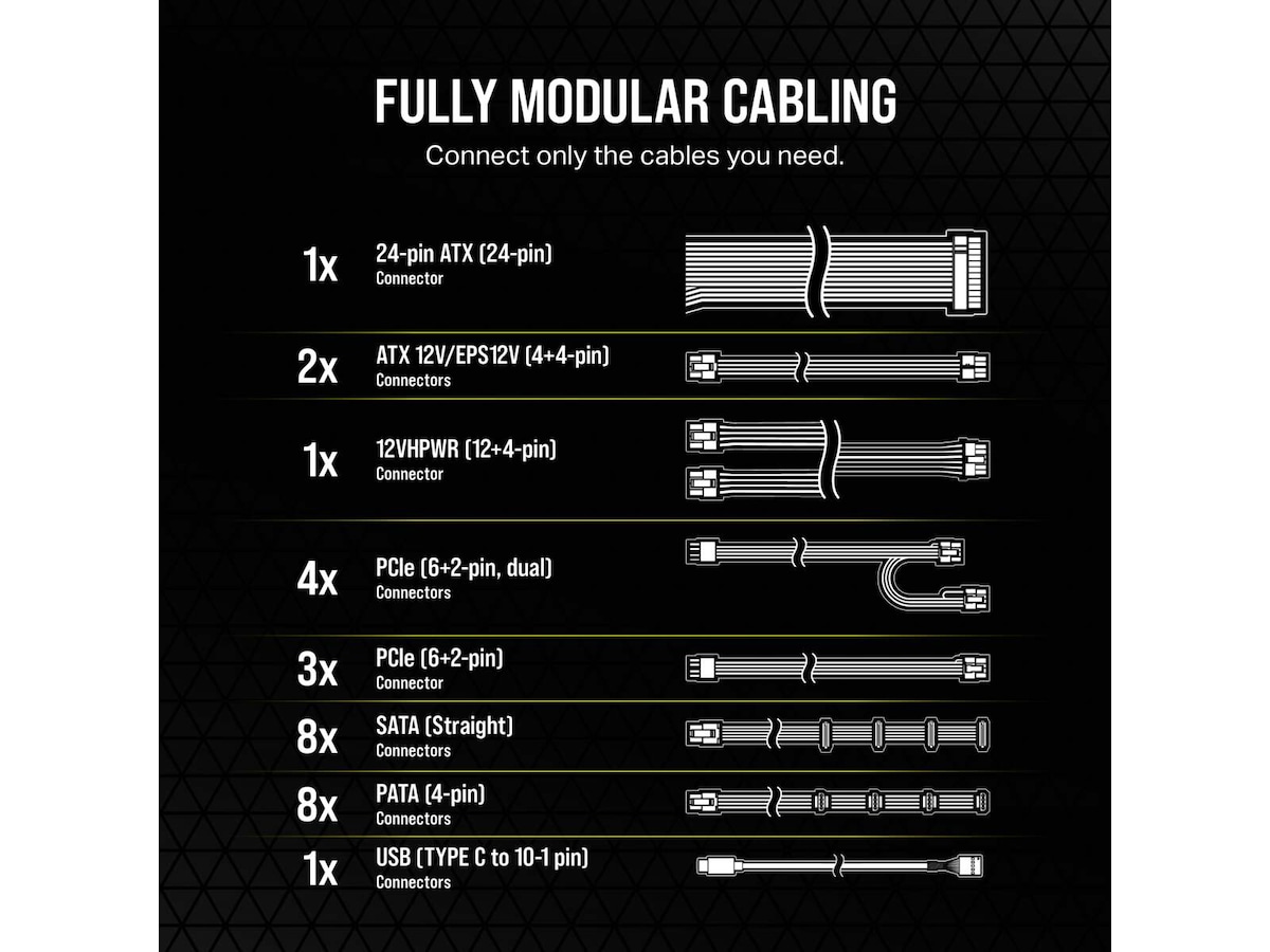 Med tre EPS12V-kontakter og fullt modulær kabling har HXi Series platinastrømforsyninger alle tilkoblingene som er nødvendige for å drive dagens mest krevende PC-oppgraderinger nå og inn i fremtiden, inkludert den nyeste generasjonen av skjermkort og prosessorer som sluker mye strøm.