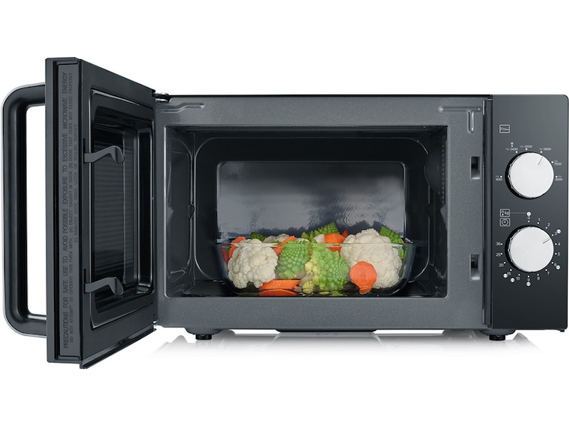 Innovativ sokkel i glass med flat overflate med mikrobølgereflektor For jevn varmefordeling og perfekt tilberedt mat, helt uten roterende tallerken.