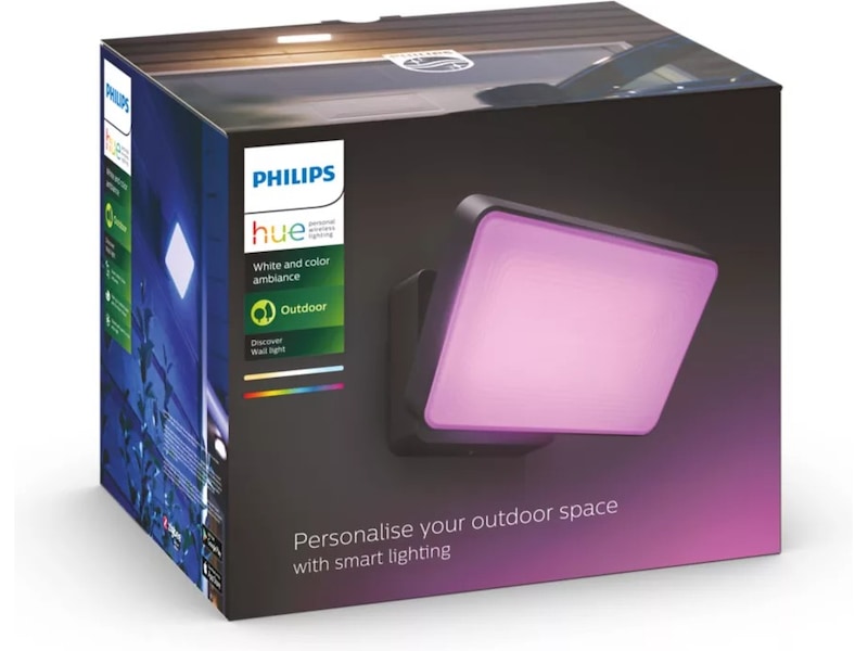 Kombiner med en Hue Bridge og bruk ethvert Hue-tilbehør til å sette opp timere og daglige rutiner. Opprett belysningsplaner som slår på lysene automatisk, både for økt sikkerhet og for en varm velkomst etter en lang dag på jobben. Med tilgang til 16 millioner farger lar Discover deg male utendørsområdene i farger og skape den perfekte atmosfæren.