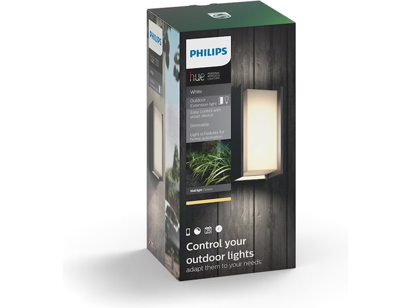 Turaco inngår i White-kategorien, noe som betyr at lyskilden kan dimmes og fjernstyres. Den kan belyse oppkjørselen, bislaget, bakgården eller andre uteområder som trenger lys. Bruk funksjonaliteten i Hue-økosystemet til å opprette belysningsplaner som slår på lysene automatisk, både for økt sikkerhet og for en varm velkomst etter en lang dag på jobben.