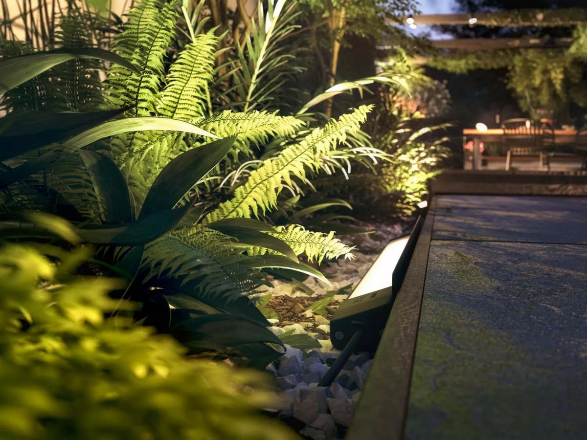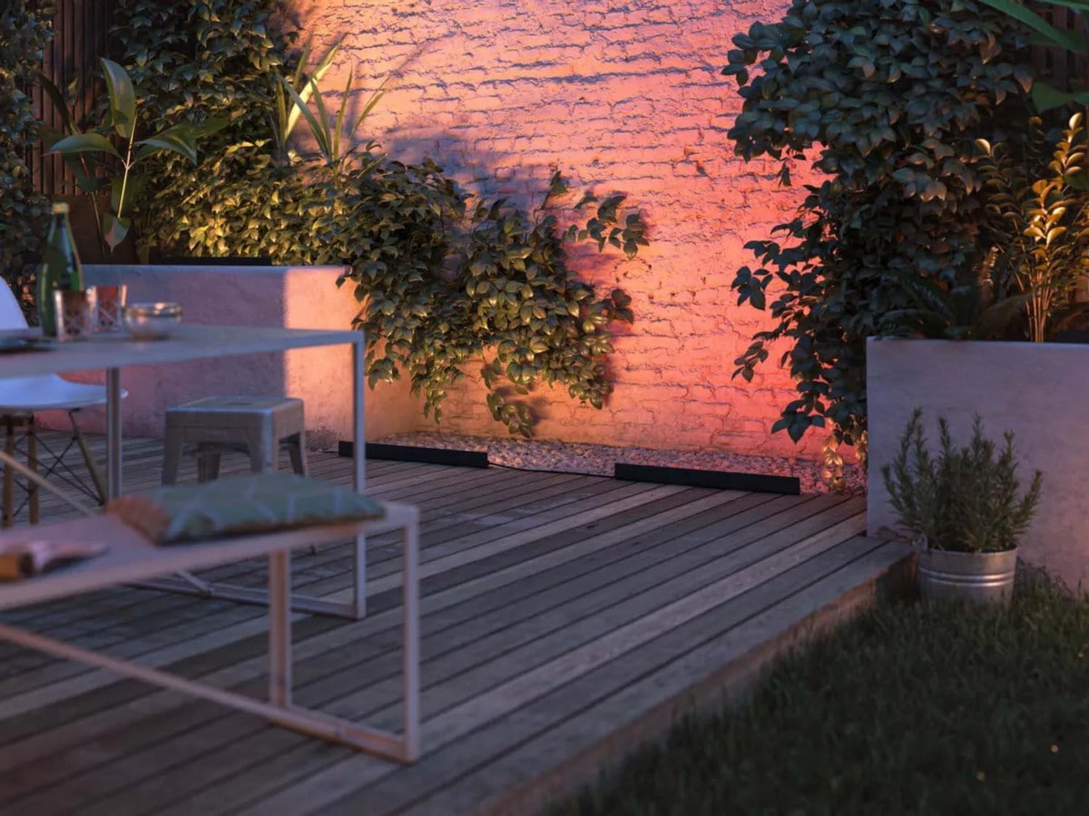 Fyll vegger, busker eller gjerder med farger ved hjelp av den smarte utendørslampen Philips Hue Amarant.