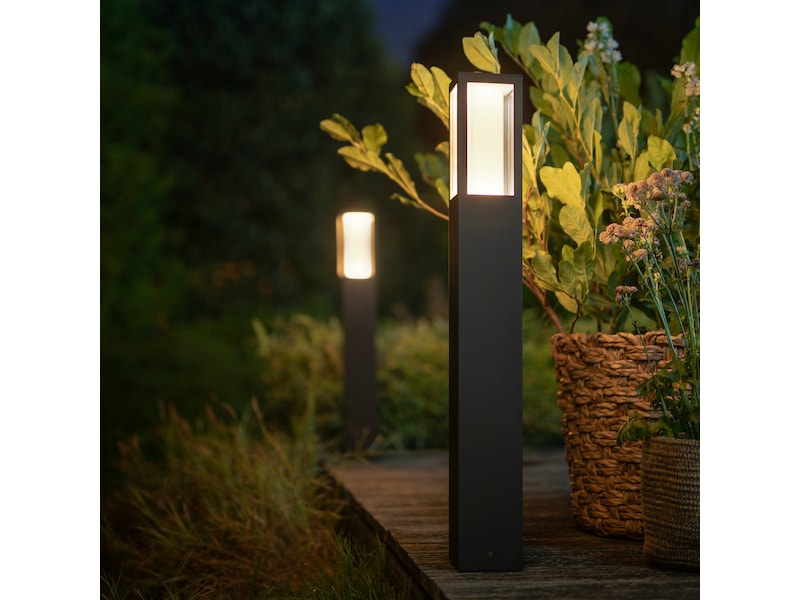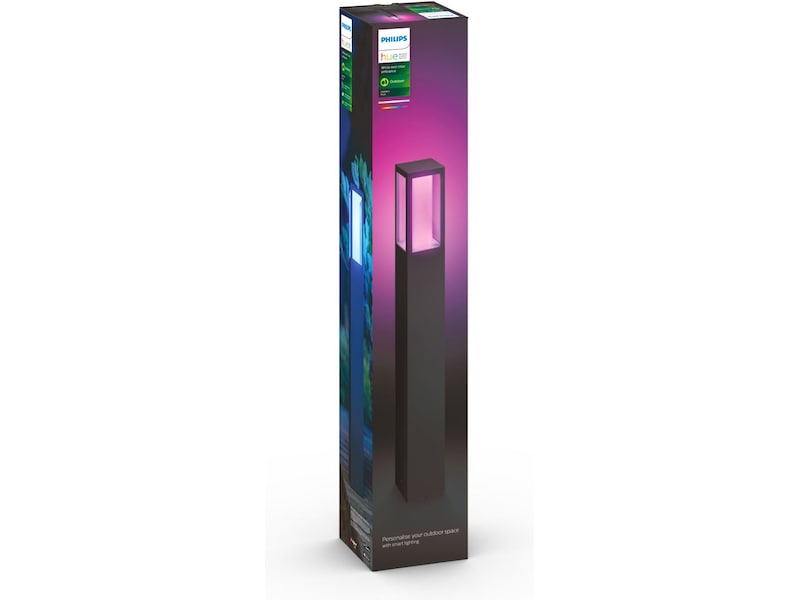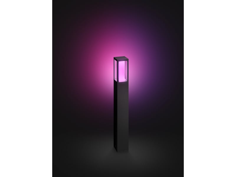 Philips Hue Impress er en moderne og unik serie av utendørsarmaturer. Denne stolpen krever en fast 240 V installasjon.