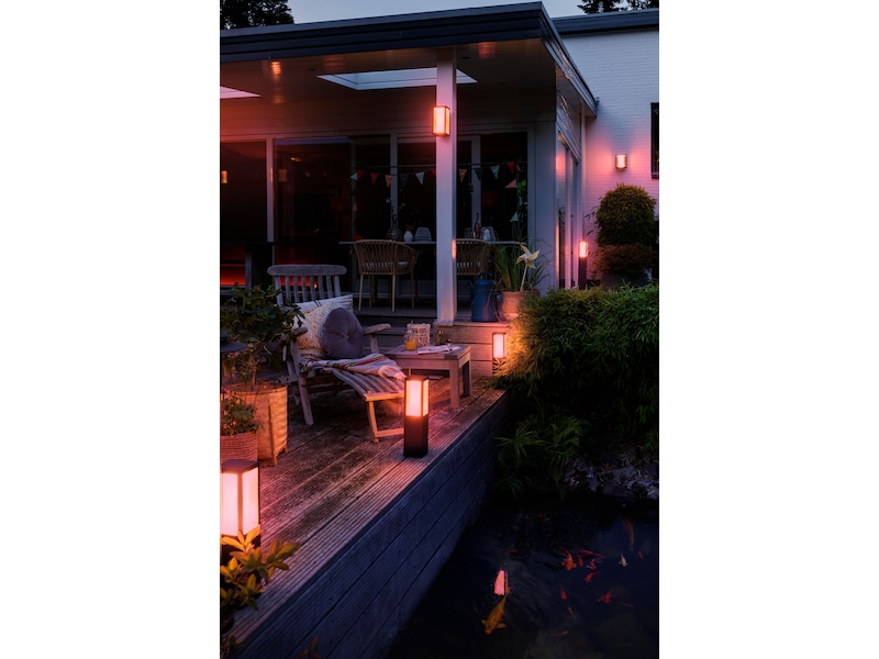 Den fabelaktige designen med 360 graders lys fyller uterommene dine med et vakkert lys. Bruk funksjonaliteten i Hue til å opprette belysningsplaner som slår på lysene automatisk, både for økt sikkerhet og for en varm velkomst etter en lang dag på jobben. Med tilgang til 16 millioner farger lar Impress deg male uterommene i hvilken farge du måtte ønske for å skape den perfekte atmosfæren.