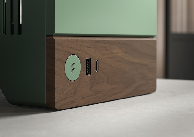 Med en av/på-knapp i aluminium og to USB-porter for tilkobling av enheter, inkludert en USB Type-C 20Gbps.