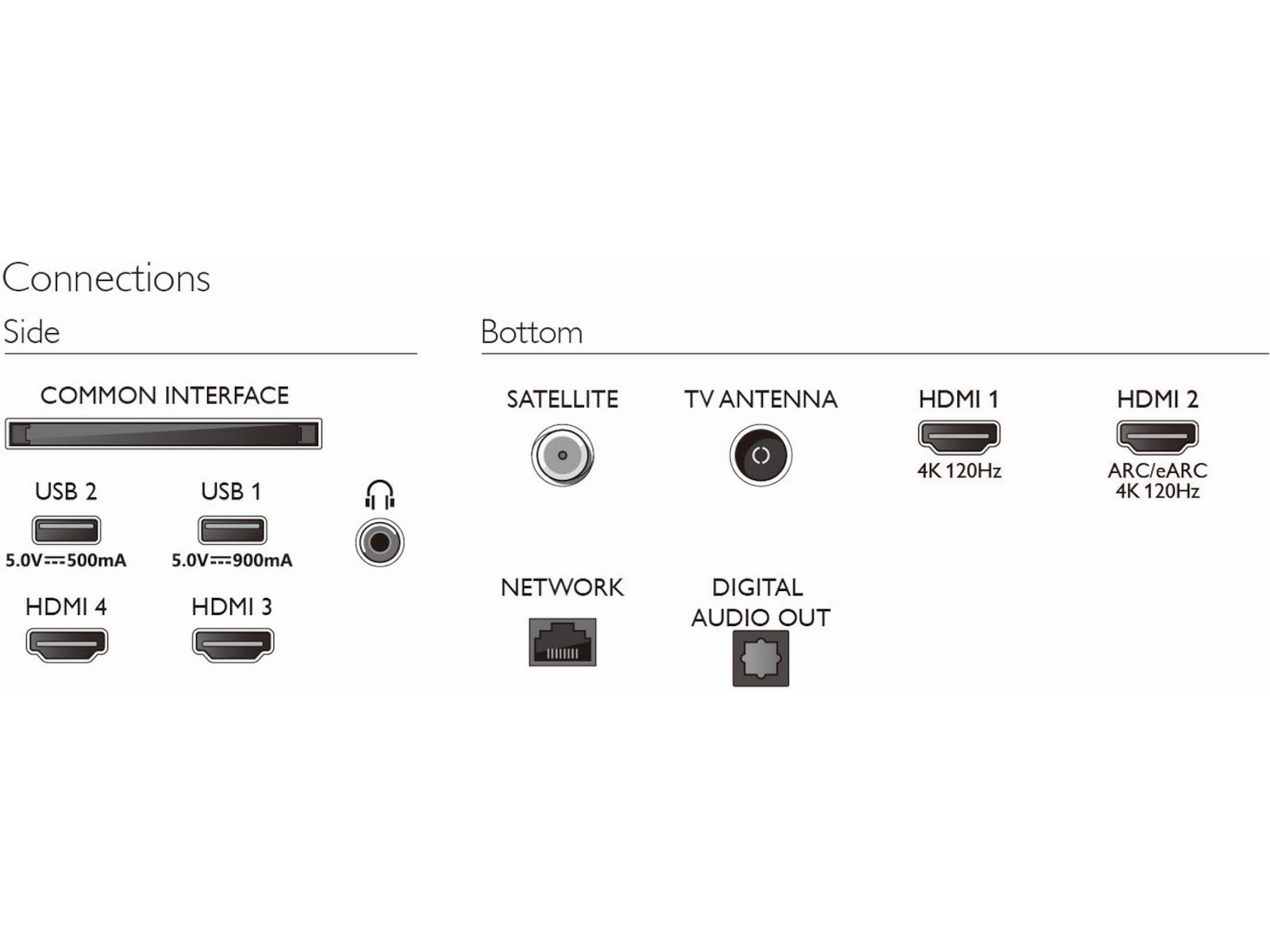 Egenskaper Ambilight Aurora, USB-opptak, FreeSync Premium, One touch Play, AmbiWakeup, Tilpasning til veggfargen, AmbiSleep, Ambilight oppstartsanimasjon, CalMAN automatisk kalibreringsstøtte, G-SYNC Compatible