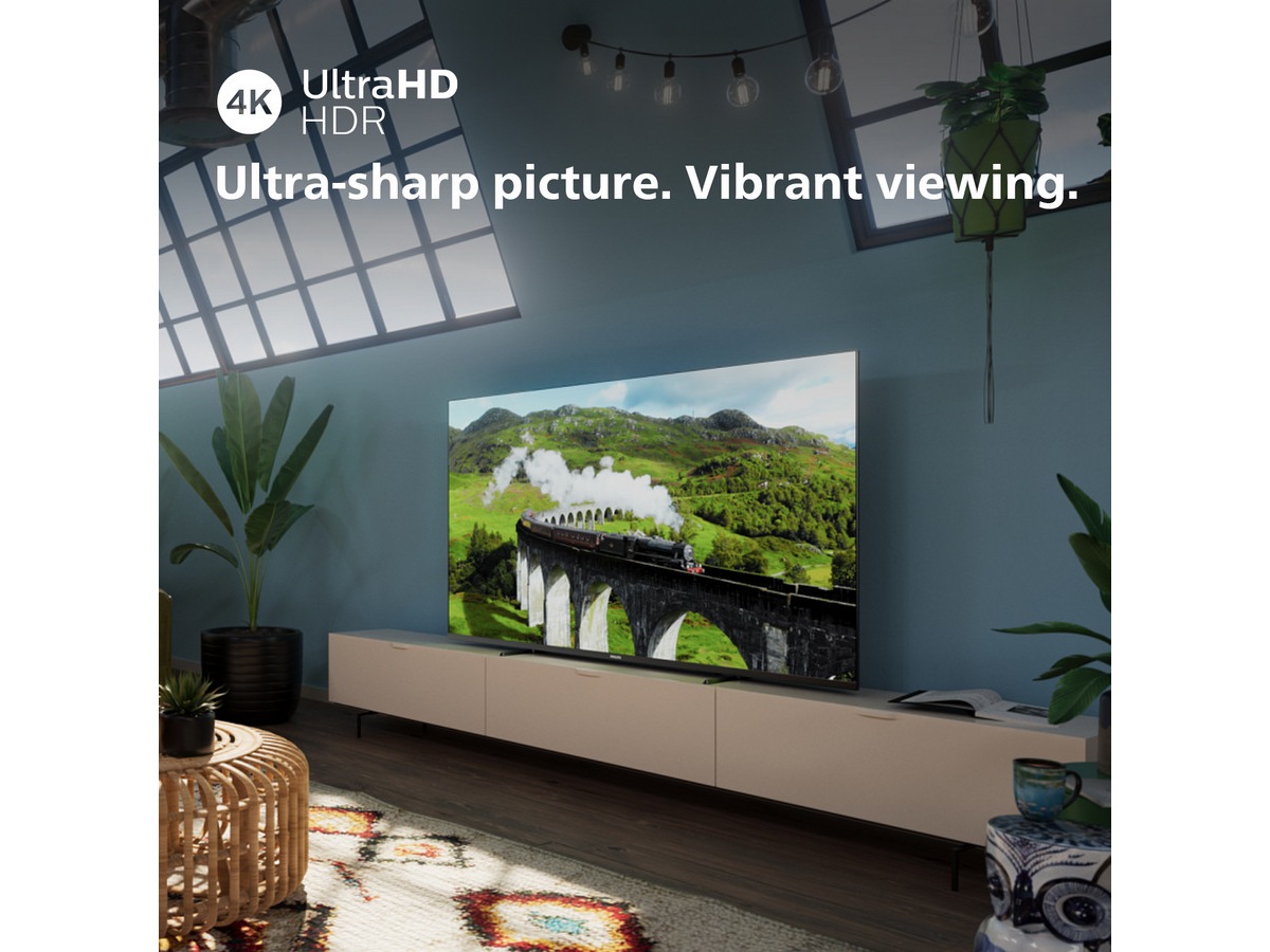 Uansett hva du ser på, gir denne 4K LED TV-en deg et klart, ultraskarpt bilde med levende farger. I tillegg er TV-en kompatibel med alle de vanligste HDR-formatene, slik at du kan se flere detaljer selv i mørke og lyse områder – når du strømmer HDR-innhold.