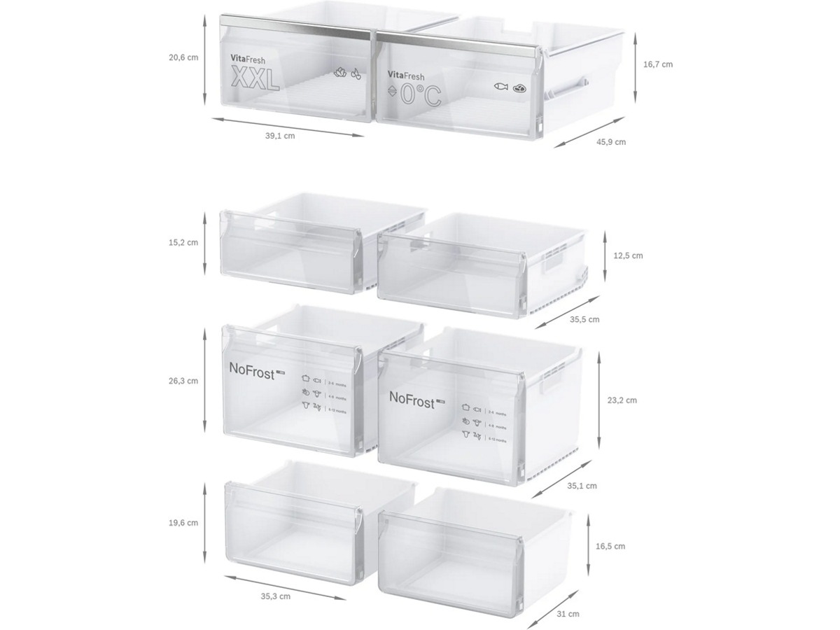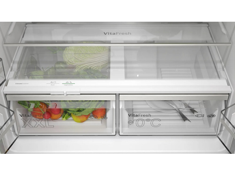 Det romslige VitaFresh XXL <0°C> systemet gir deg ideell oppbevaring av ferskmaten din. Det holder temperaturen lavere for kjøtt og fisk, og det er en egen, klimakontrollert skuff for å holde frukten og grønnsakene dine virkelig ferske.