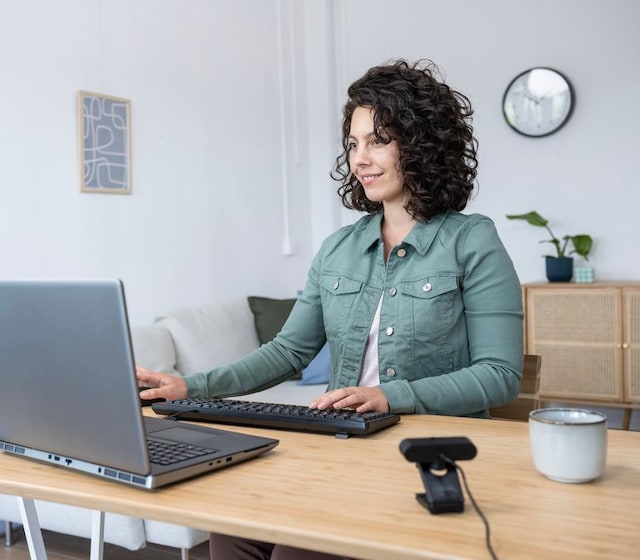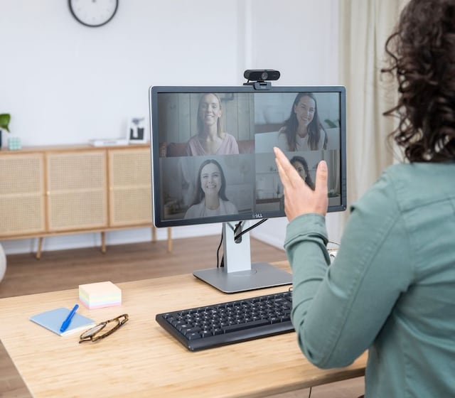 Bare koble til og begynn å ta opp – ved hjelp av det medfølgende universalstativet som passer for både skjermer og skrivebordsoverflater.