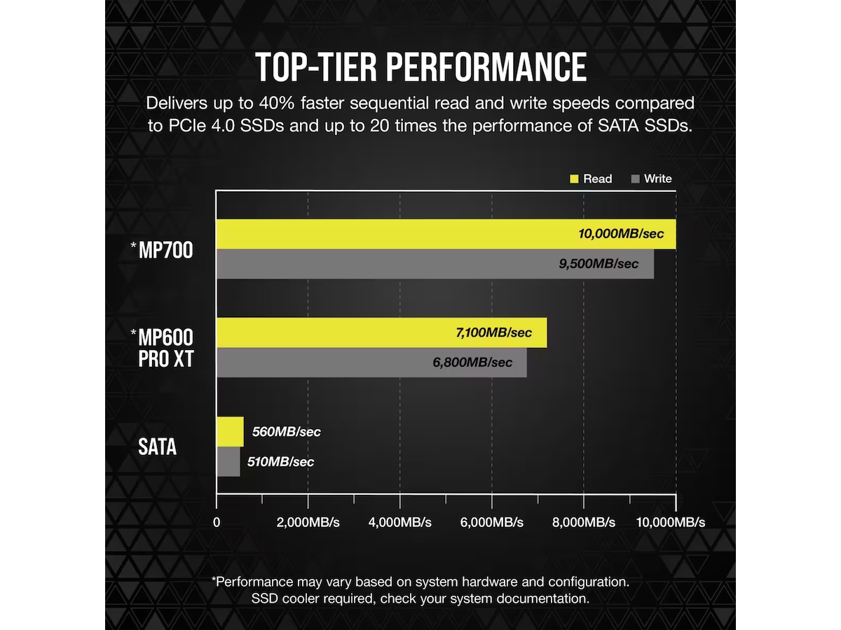 *Velge hovedkort i Intel Z690 og Z790 og AMD 600 Series; lavere ytelse på PCIe Gen4 M.2-hovedkort