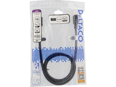 High-Speed, fleksibel HDMI kabel, 4K UHD 4K, Ultra HD 10,2 Gb/s båndbredde Kabelstørrelse: 30 AWG Gullbelagte kontakter Høyhastighets HDMI med Ethernet Støtter oppløsningen på 3840x2160 ved 30Hz. Fleksibel HDMI-kabel, høyhastighets HDMI med Ethernet, 4K, UltraHD ved 30Hz, gullbelagte kontakter, 19-pinners ma-ma