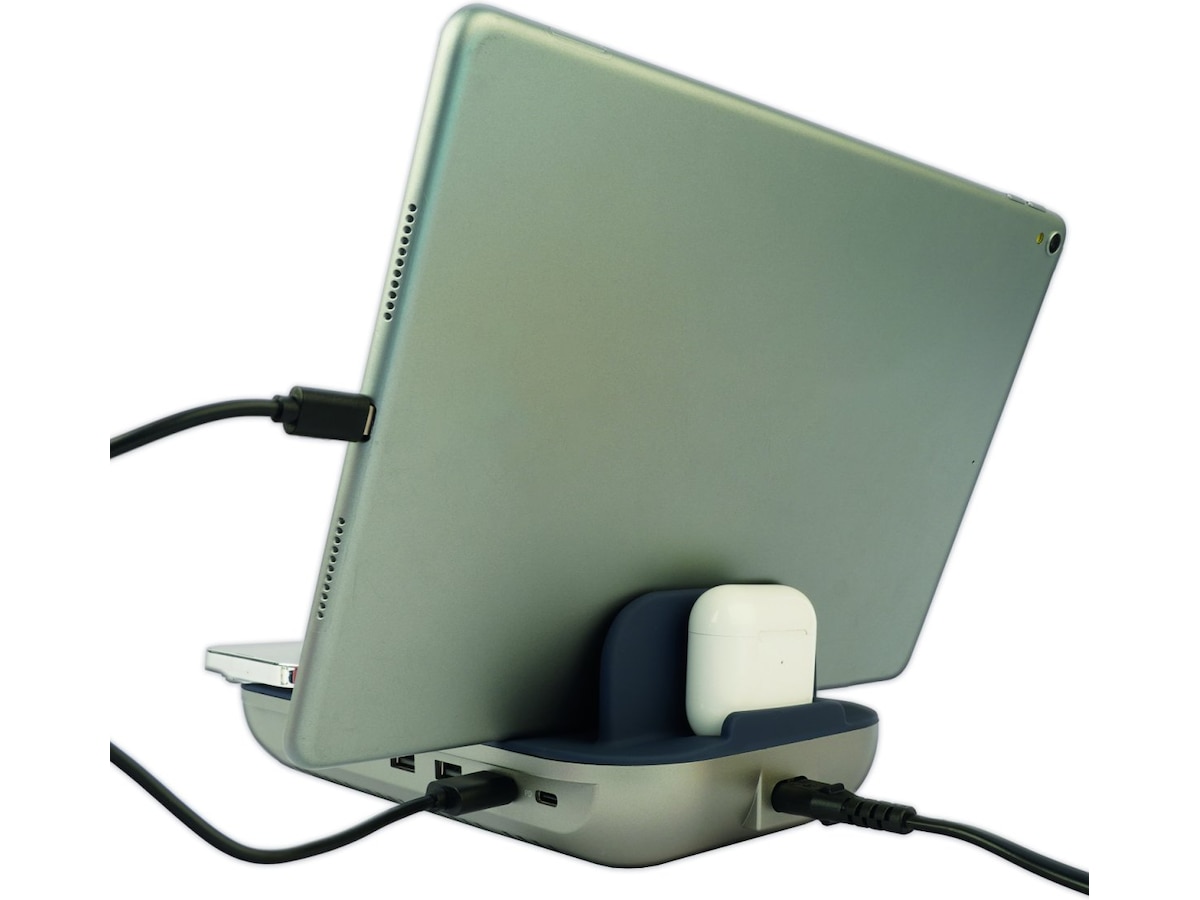 Vår USB C ladestasjon Charging Station, som kan lade opptil seks enheter samtidig, er en absolutt ressurs for alle kontorer og hjem. Denne ladestasjonen er den perfekte løsningen for de som irriterer seg av et floke av kabler. Det er en praktisk og effektiv måte å lade alle de elektroniske enhetene dine på. Denne ladestasjonen er spesielt flott for familier som har mange enheter og trenger et sted å lade dem. Det er en enkel måte å være sikker på at alle enhetene dine er klare til bruk til enhver tid.