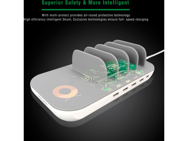 • Universal:Én lader for alle mobilenhetene dine lader opptil 6 enheter samtidig.