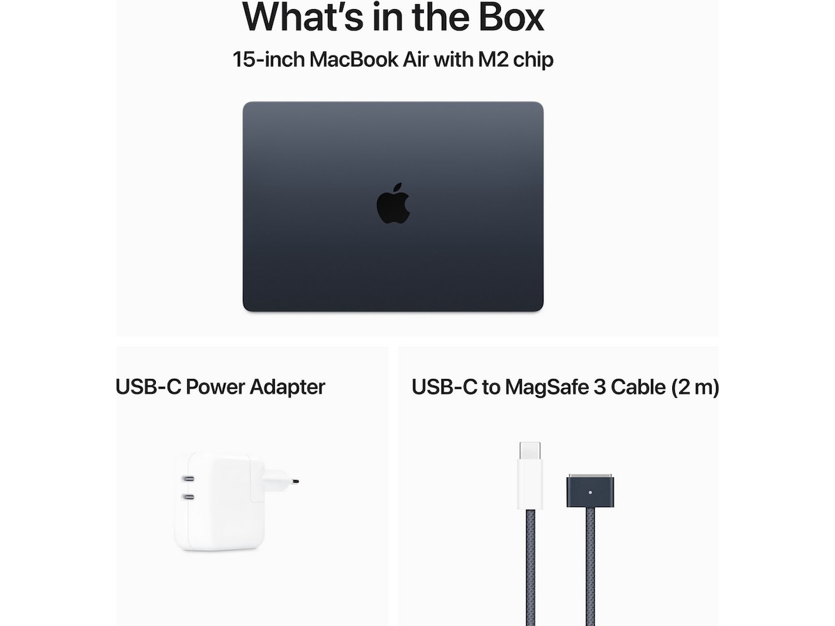 Inkludert tilbehør USB-C kompakt strømadapter med to porter, USB-C til MagSafe 3-ladekabel (2 m)