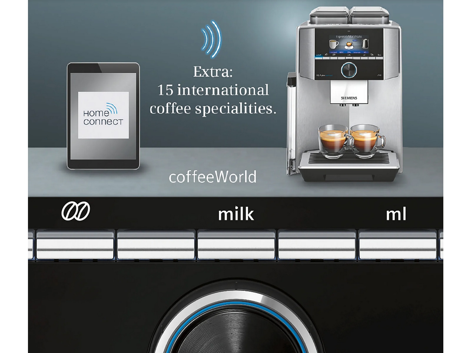 Betjen din helautomatiske espressomaskin med nettbrett eller mobil. Og oppdag den eksklusive verdenen til Home Connect-appen. CoffeeWorld tilbyr for eksempel en rekke internasjonale kaffespesialiteter. Eller prøv kaffespillelisten for å få en liste over favorittdrikkene dine tilberedt etter hverandre.