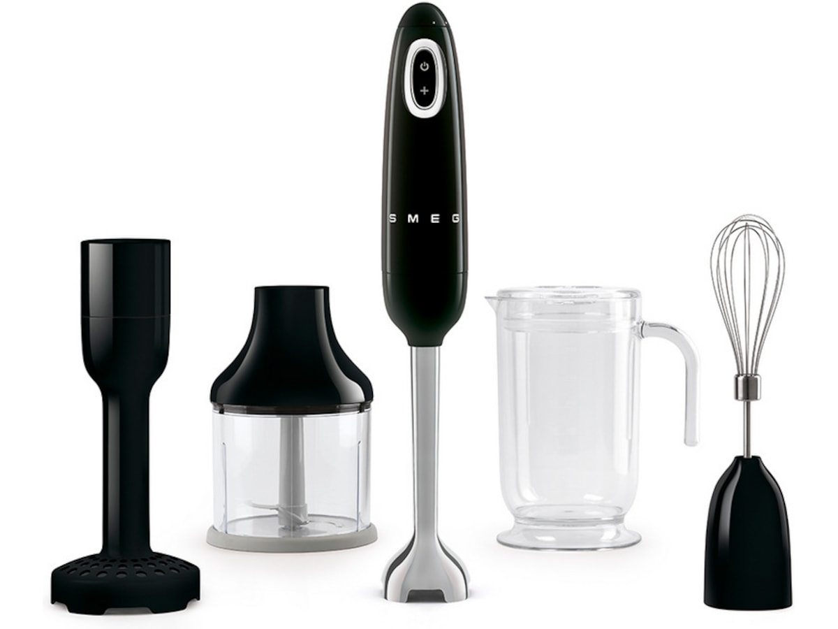 BPA-fritt beger, hakker med blader i rustfritt stål, potetpresser og til slutt en visp av rustfritt stål.